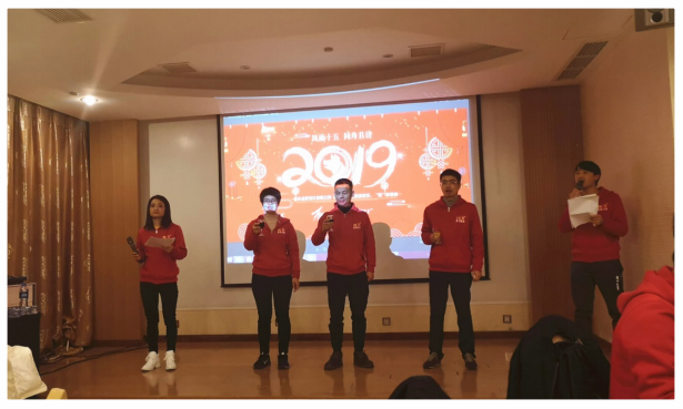 金華金辰的迎新晚會在一片紅色的海洋里拉開帷幕,所有小伙伴都著公司紅艷文化衫,望未來幸福年; 公司總經理李劍忠先生對2018年工作進行了總結匯報,帶領我們一起回顧了過去一年取得的成績,以及開拓的領域,并借此機會總結經驗,提出了對未來的規(guī)劃、建議和要求,為我們在新的一年里順利展開工作明確方向。