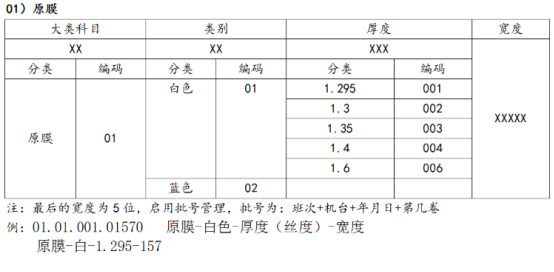 由于薄膜的產(chǎn)品特殊性,所以以“厚度+寬度”作為產(chǎn)品的分類,以方便查找物料。