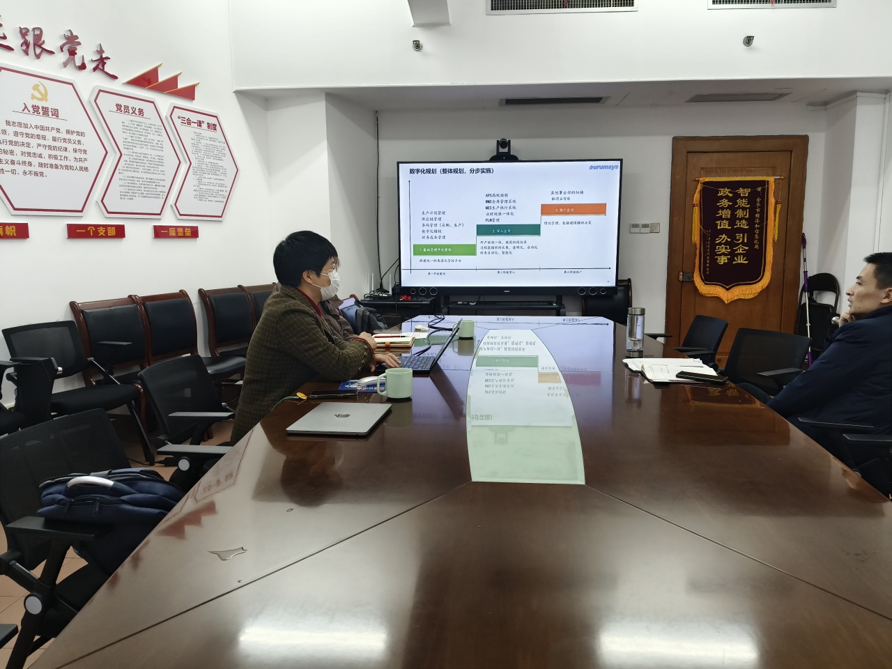 和金華市經(jīng)信局?jǐn)?shù)字經(jīng)濟(jì)處施處長做了匯報(bào)和交流,施處對金華金辰軟件有限公司目前取得的成績給予了認(rèn)